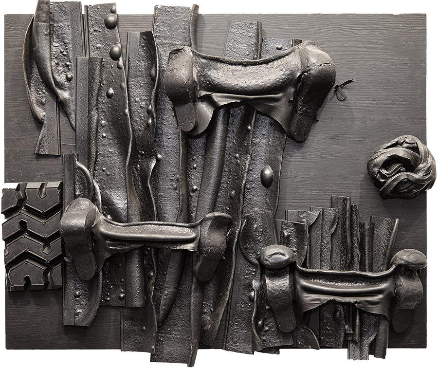 2022, Gummi / Holz / Acryl, 120 x 103 x 24 cm