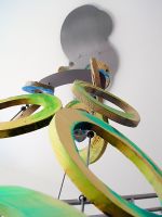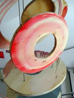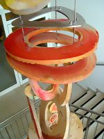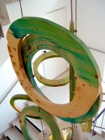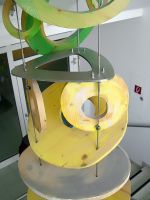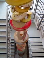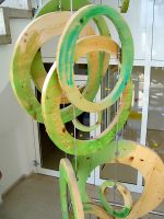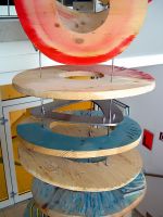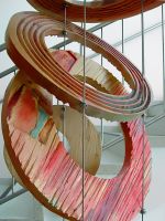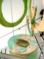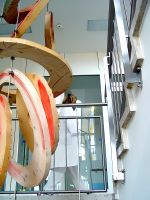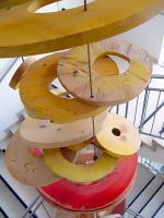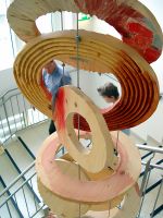 Wenn man bedenkt, dass die Installation unter großem Zeitdruck in der letzten Umbauphase des Krankenhauses 2005 eingebaut wurde, kann man ermessen, welche gestalterische Kraft und planerische Umsicht notwendig war, um dieses Werk zu schaffen: vom Ausschneiden der Scheiben mit der Handkreissäge aus einem Block aus Leimholzplatten über die Arbeiten mit der Oberfräse und dem Schnitzmesser bis zum Glätten mit dem Bandschleifgerät.
