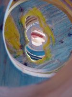 Die Grobgliederung der Jahresscheiben nach Geschossen ist farblich hervorgehoben und entspricht den Jahreszeiten bzw. den Lebensabschnitten: das Grün der obersten Etage dem Frühling oder den ersten Lebensjahren, das Gelb dem Sommer oder der Vollkraft des Lebens, das Rot dem Herbst oder dem Lebensabend und das Blau dem Winter oder dem Greisenalter. Diese Akzentuierung des Lebens betont der Künstler durch auf vier Holzscheiben geschnitzte Hände – von Kleinkinderhänden über tatkräftige Erwachsenenhände bis zu greisenhaften Händen.